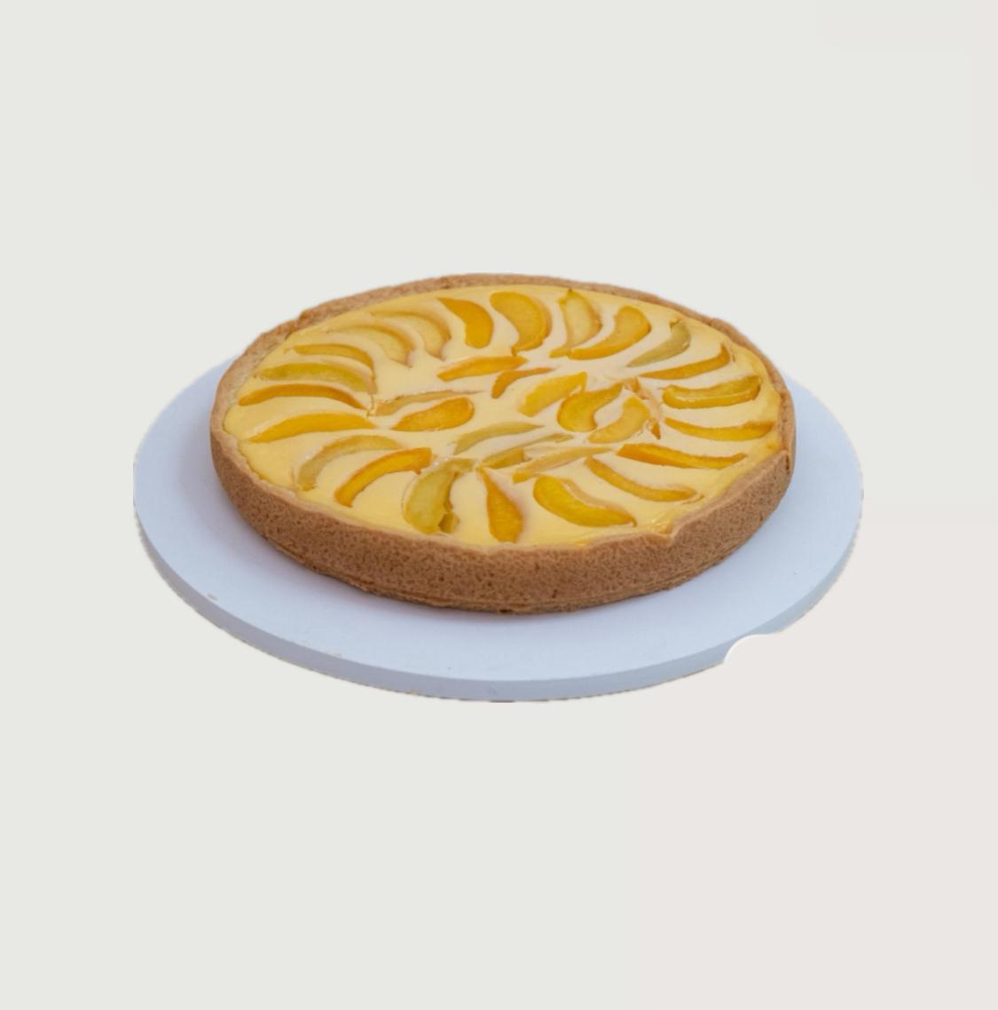 Состав:  песочное тесто, домашняя сметана, сахар, консервированные персики.